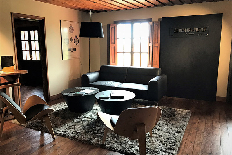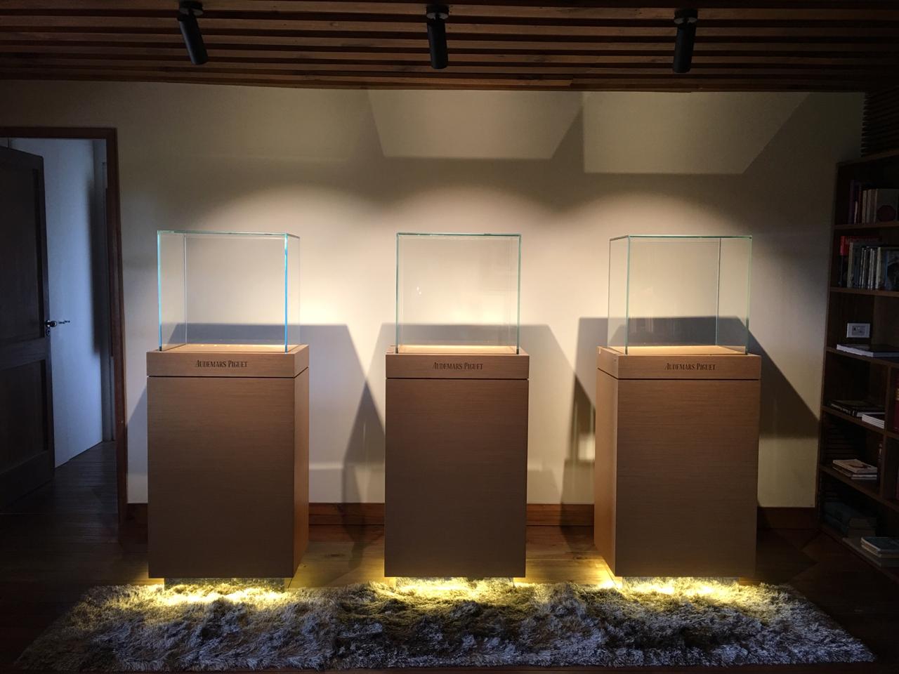 En este conjunto de locales, a los que se accede tanto por la circulación interna como desde el exterior, nuestro cliente Chronos BA nos solicitó el montaje de una boutique para Audemars Piguet, la antigua y prestigiosa manufactura de relojería suiza originaria de Le Brassus.