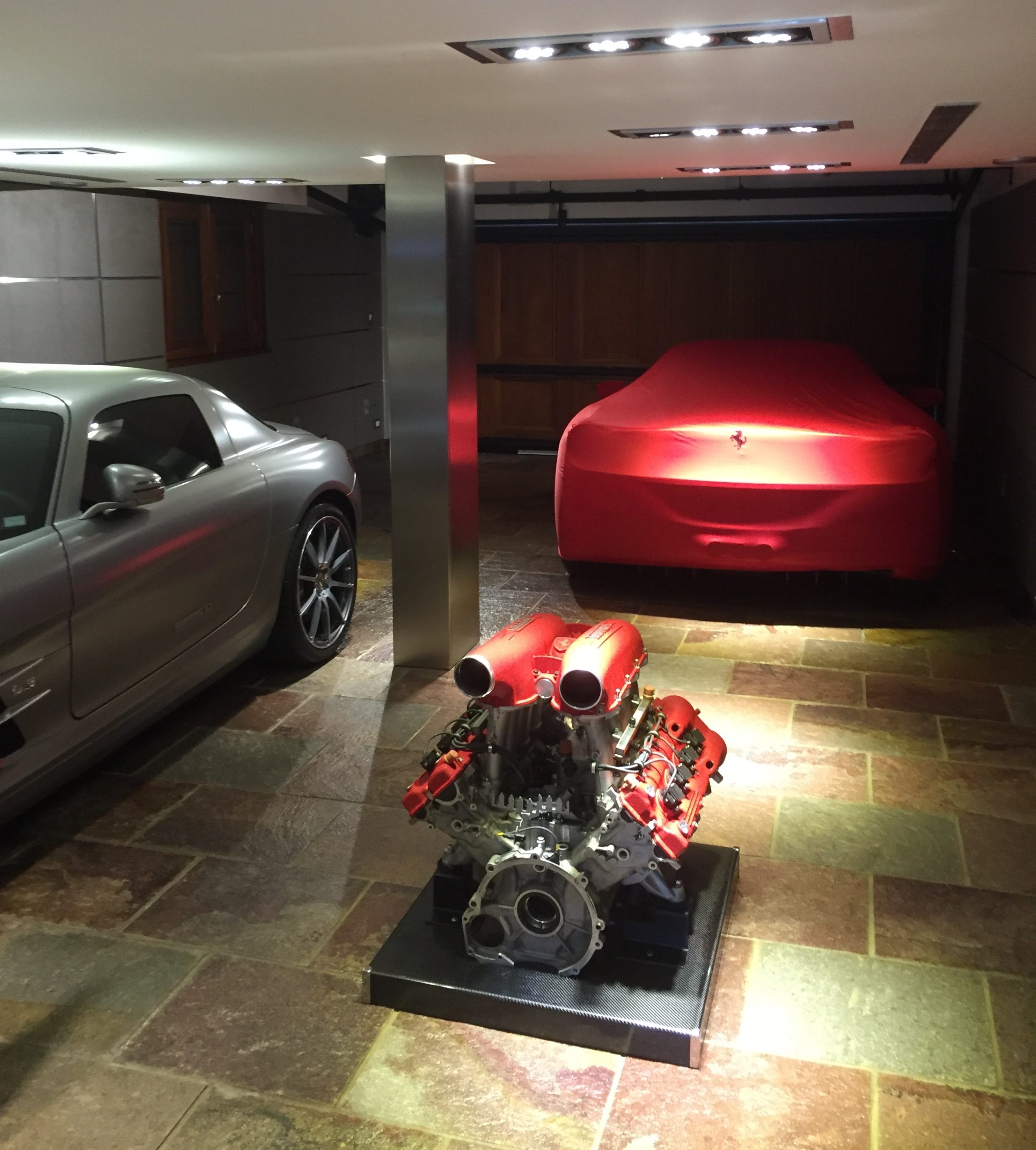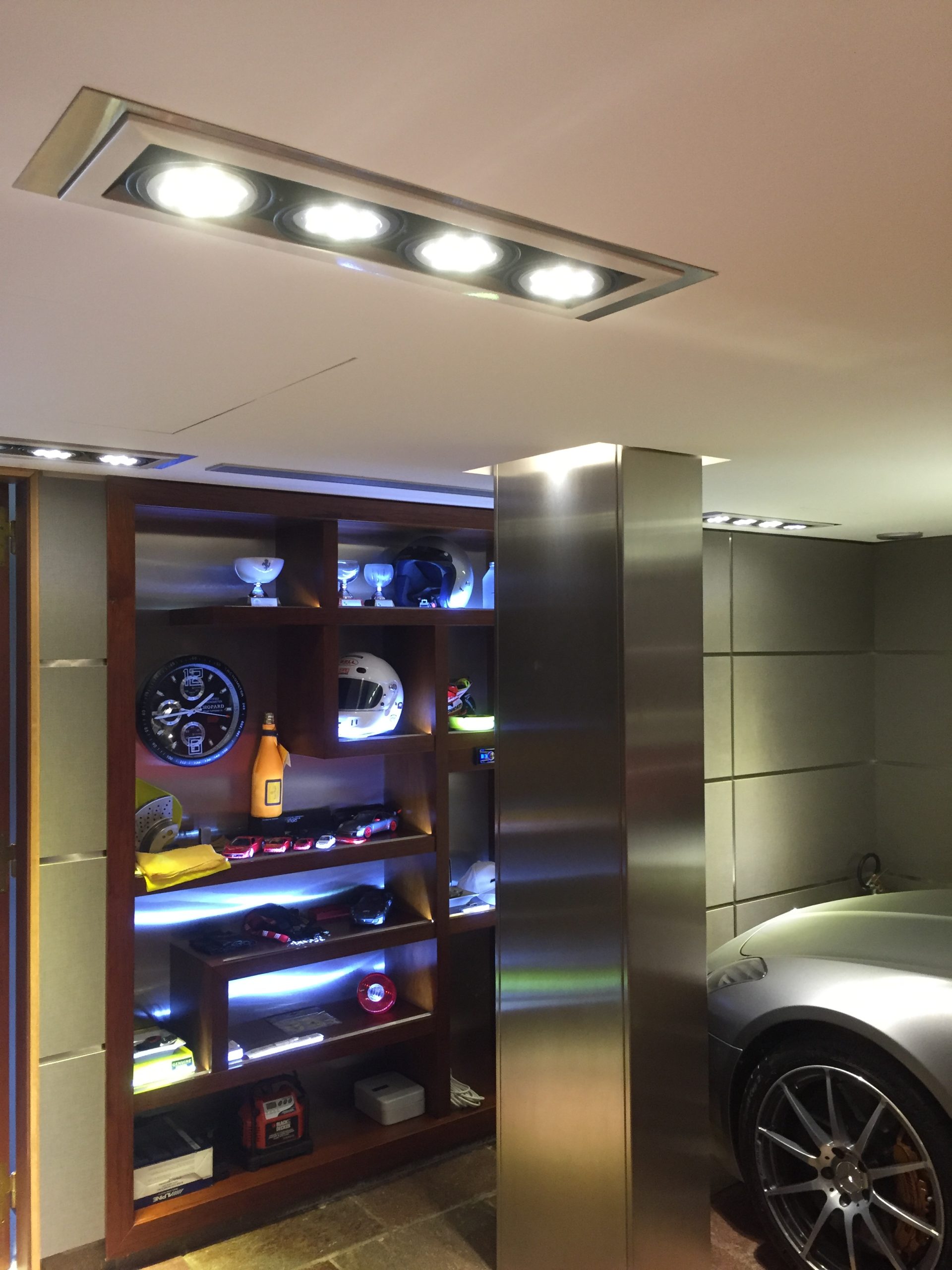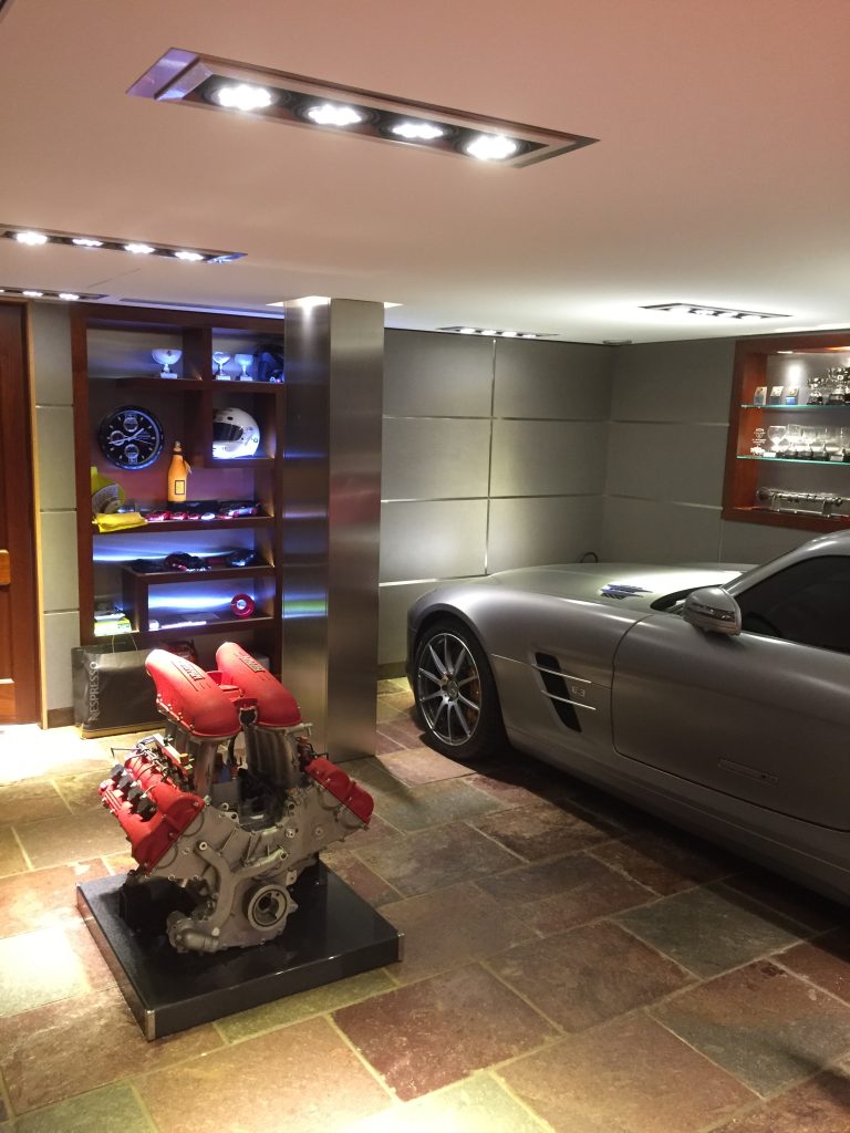 La obra demandó la redistribución de todos los espacios, desarrollando para el garaje un nivel de diseño interior acorde a la colección de autos y trofeos que allí se guardan. Una segunda etapa incluyó la remodelación de la planta alta de la casa.