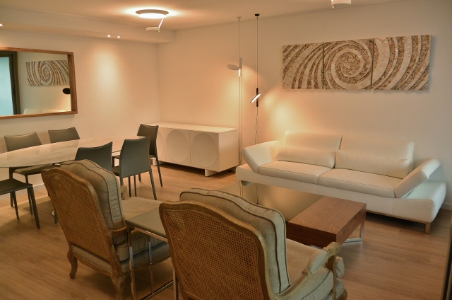 Este departamento, con vista hacia ambas costa de la península en Punta del Este, ha sido equipado por nuestro estudio, seleccionando mobiliario de varios proveedores locales y diseñando equipamiento a medida para mejorar su funcionalidad. La propietaria encomendó una arquitectura de interiores que combinara una impronta moderna con detalles de estilo.