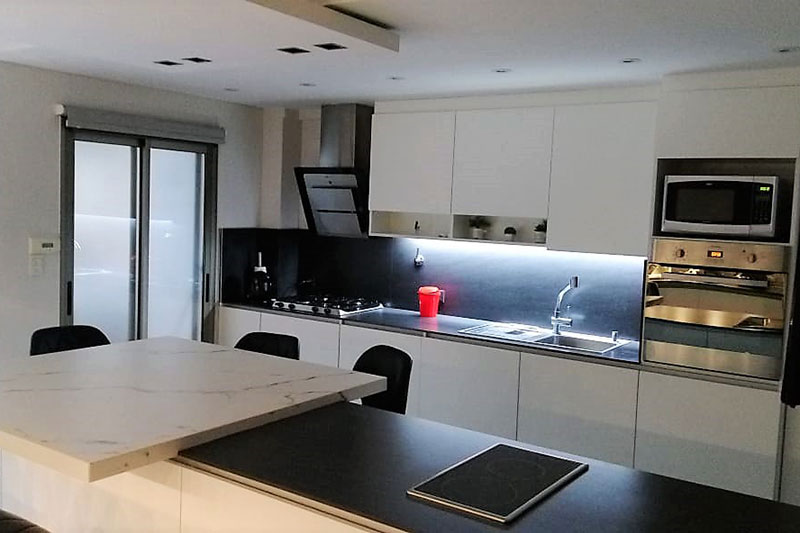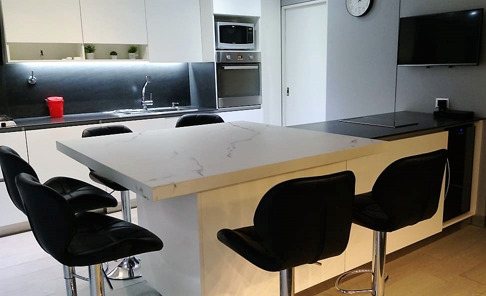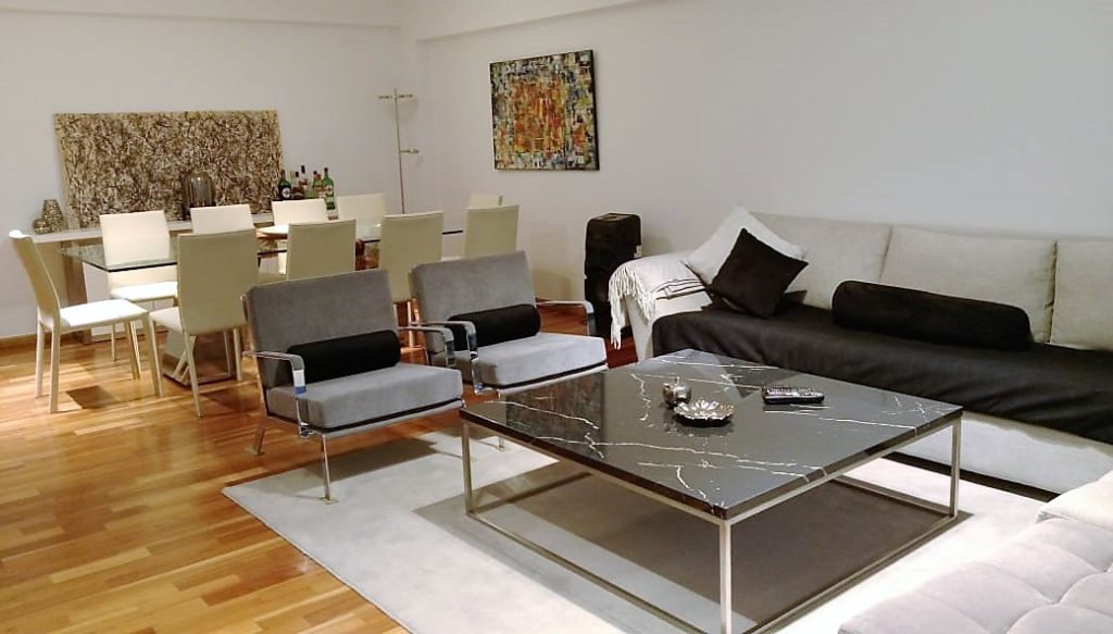 Este piso en la Av. Pedro Goyena, prestigiosa área del antiguo barrio de Caballito, fue una obra de reciclaje total donde la mayor intervención se produjo inicialmente en las zonas de cocina, comedor diario y servicios, siendo luego complementada con todas las terminaciones usuales de alta calidad para el resto de la casa.